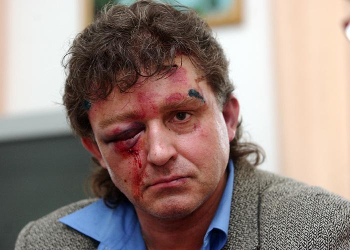 Politik KSČM a milovník filmu „Obušku, z pytle ven!“ Jiří Dolejš. Tvář pošramocená, mullet stále drží.