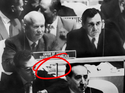 57 let od Chruščovovy boty v OSN. Plus: poznáte, kudy se před 53 lety procházel v Česku?