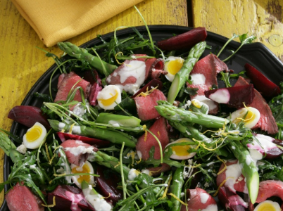 Chřestová sezóna je tu! Dejte si steakový salát s chřestem a červenou řepou