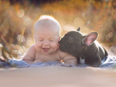 8 fotek francouzského buldočka a miminka, kteří se narodili ve stejný den a myslí si, že jsou bratři