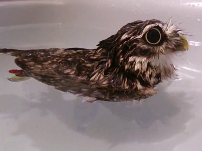 Strachy ztuhlá sovička ve vaně je internetovým hitem