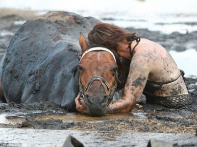 18letý kůň Astro si prožil tříhodinové peklo, v jehož průběhu se nořil hlouběji a hlouběji do bahna.