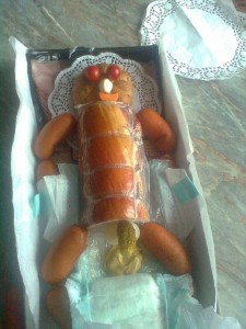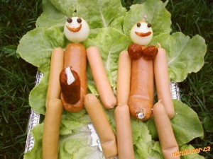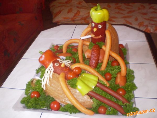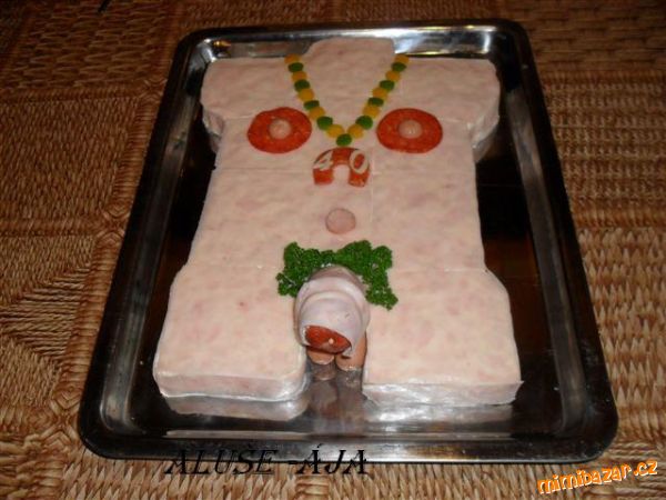 Kreativní autorka nezapomněla ani na předkožku z plátku šunky a petrželkové pubické ochlupení
