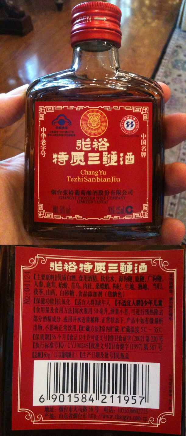 Ty penisy musejí být ze tří druhů: z lachtana, z jelena a ze psa. Číňani jim je ufiknou a nechají macerovat v rýžovém víně. Výsledný nápoj se jmenuje Tezhi Sanbian Jiu, tedy „Třípenisový likér“. Prý zvedá potenci, pokud vám ovšem dřív nezvedne žaludek. A možná se z toho dá namíchat i nějaký zajímavý koktejl (z anglického „cock–tail“, tedy doslova „kohoutí vocas“).
