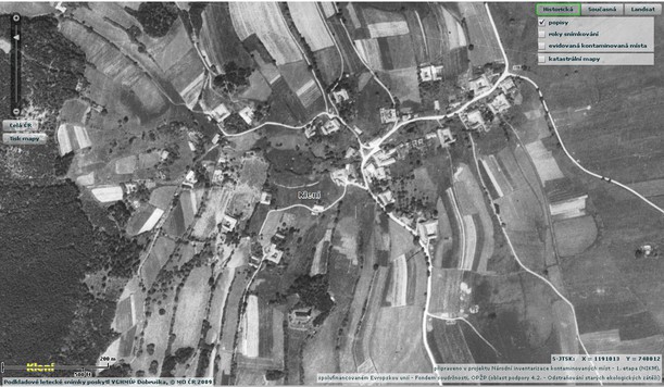 11. Ortofotomapa (letecká fotografická mapa ČR) z 50. let 20. století