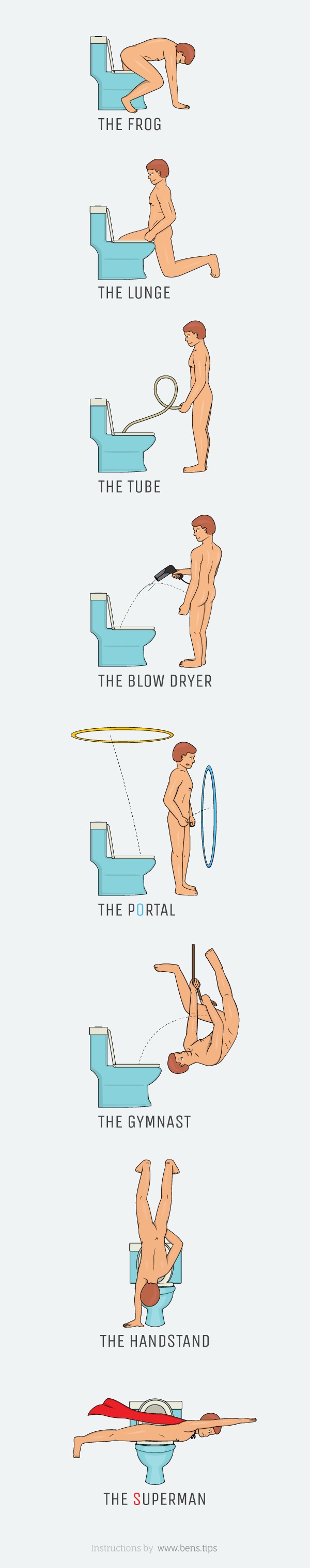 Jenže jak skloubit výše zmiňovaný močový měchýř s penilní tumescencí? Tady máte hned 8 krajně kreativních možností podle vtipných chlapíků z blogu Ben´s Tips: