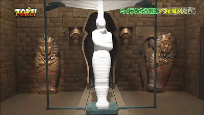 Zatímco jsou hosté bombardováni otázkami, jsou zaživa mumifikováni. Vypadá to fakt parádně!
