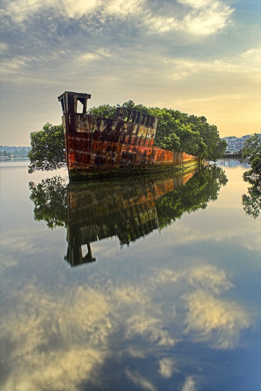 pinterest.com Říká se mu Plovoucí les a je očividné proč. 29 metrů dlouhá Ayrfield byla v roce 1911 postavena ve Velké Británii a během 2. světové války zásobovala americké vojáky v Pacifiku. Po válce ještě sloužila až do roku 1972 pro komerční přepravu, poté byla "pohřbena" do zátoky Homebush. Je na ni stále krásný pohled.
