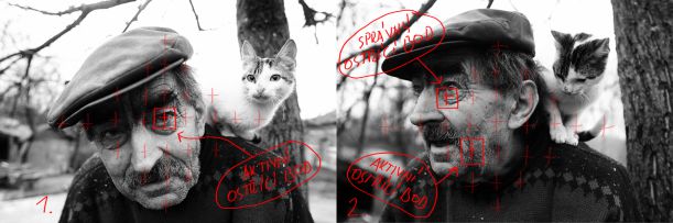 sirokac1 Pro dosažení co nejdokonalejší ostrosti je dobré používat ostřící body položené co nejblíže k místu, které chceme mít ostré. Na obrázku č. 1 jsem použil ostřící bod umístěný přímo uprostřed, jelikož mi v kompozici, kterou jsem si vybral, krásně vyšel přesně na oko, které jsem chtěl mít ostré. Na obrázku č. 2 je naznačeno, který ostřící bod byl skutečně použit a který být použit měl, aby bylo zaostřeno na oko. sirokac2 Na těchto výřezech je krásně vidět, jak výrazné neostrosti jsme dosáhli špatným použitím ostřících bodů. Na obrázku č. 1 je krásně proostřené oko, zatímco na obrázku č. 2 máme proostřené vousy.