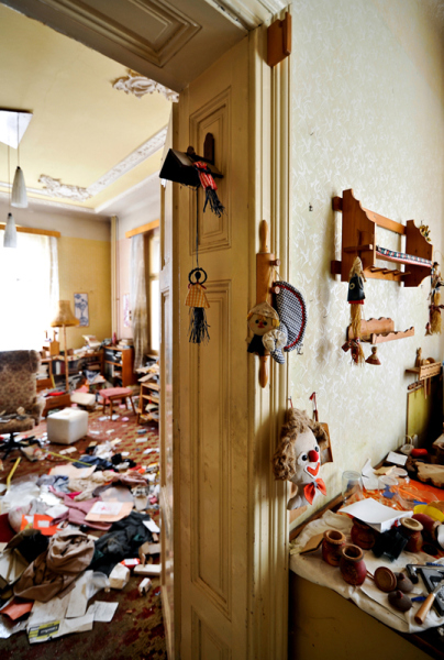 e f gDOPISY Spousta dopisů poházených po zemi adresovaných paní Hedě, plně vybavená kuchyně, obývací pokoj s fotoalbem, diapozitivy a nepoužitými filmy jejího muže, pana Jaroslava, gramofonové desky a staré kazety, knihy a dokonce netknuté vánoční cukroví... Intimita na stříbrném podnose. Atmosféra, že by se dala krájet. Co asi zůstane po nás?