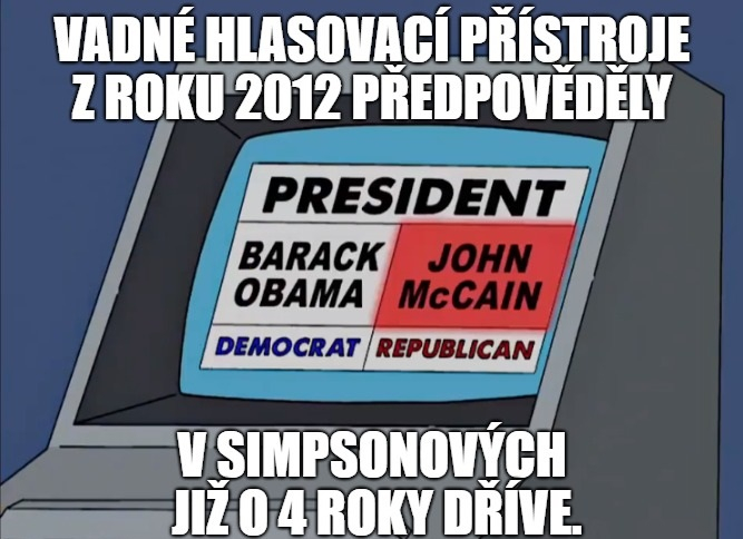 Homer se v roce 2008 zoufale snažil volit Obamu - přístroj ale dával všechny jeho hlasy Johnu McCainovi. To samé se stalo o 4 roky později, když volební přístroj v Pensylvanii hlasoval pouze pro Obamova soupeře Mitta Romneyho.