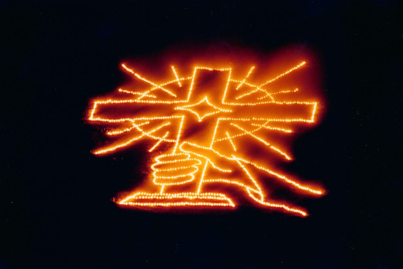 Náboženské motivy jsou jedním z nejčastějších symbolů, který v červnu rozsvítí tyrolské Alpy.