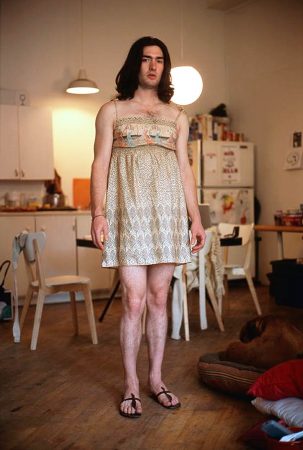 Jedna z mnoha nevýhod toho, když jste ve vztahu se ženou je, že když si půjčíte její hadry, vypadáte jako debil