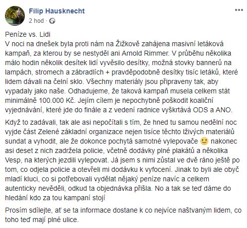 Vyjádření zeleného radního Filipa Hausknecht, který byl tzv. na místě činu.