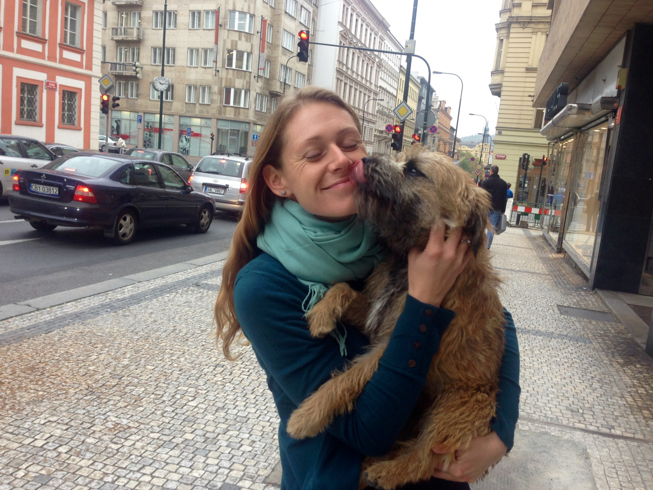 Lenka Hrazdilová Benešová v náručí s redakčním psem Kašparem, o němž si myslela, že je to její Eliot