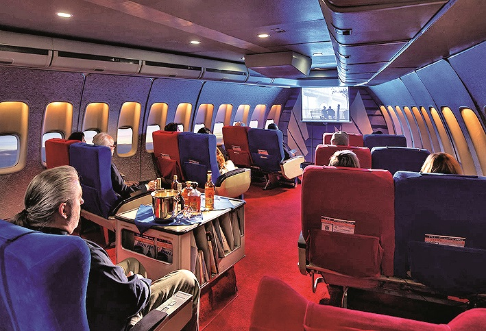 Projektory v první třídě měly navodit dojem kina v oblacích. Masovému rozšíření ale bránily bezpečnostní předpisy.