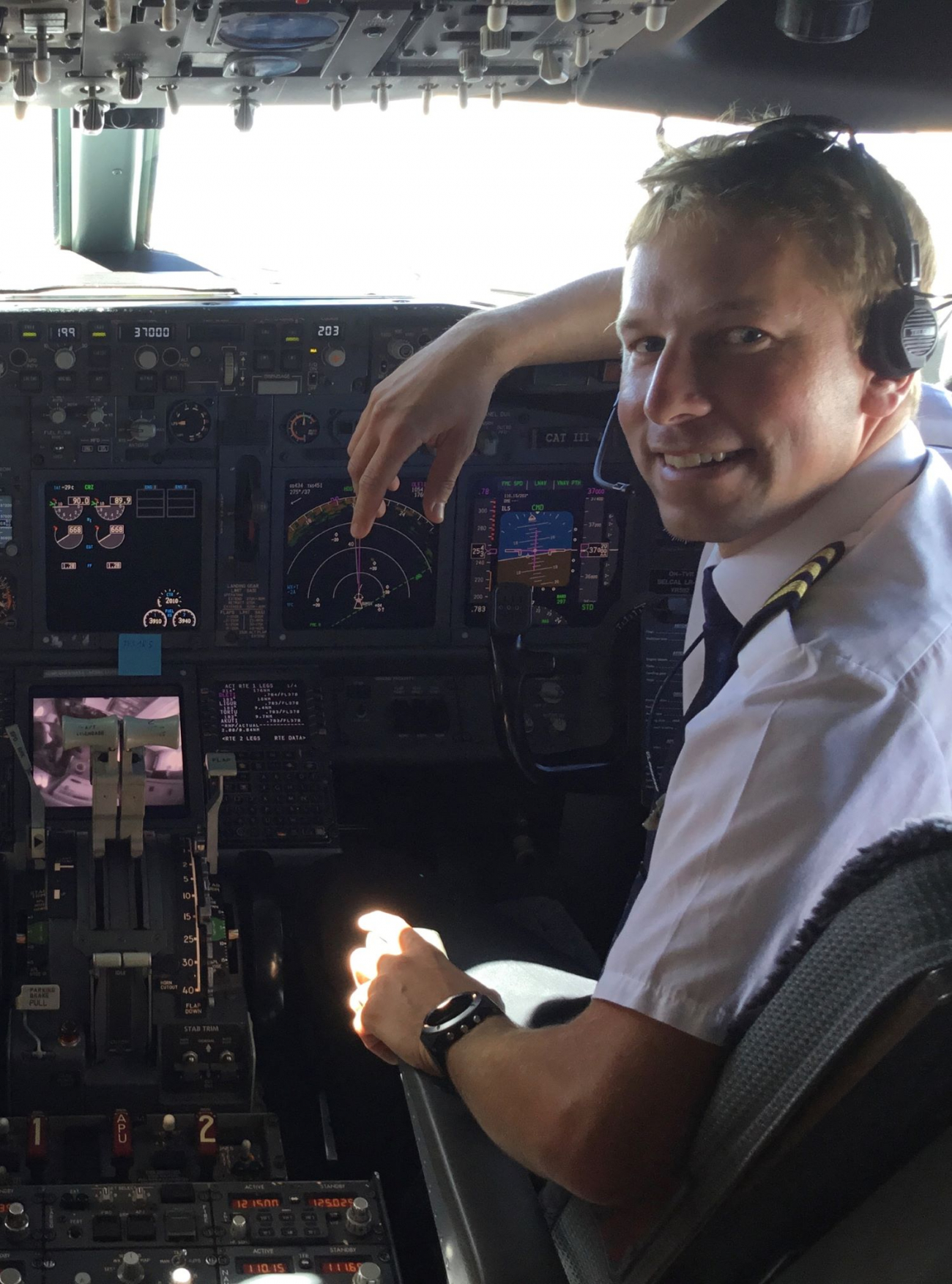 Druhou polovinou svého pracovního já je pilotem dopravního letadla u společnosti Smartwings.
