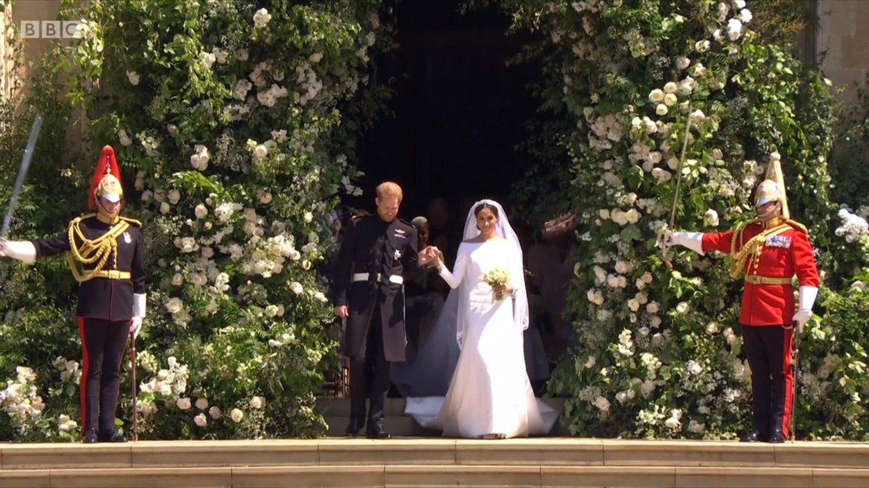 Novomanželé vycházejí na světlo světa. Doják jako blázen.