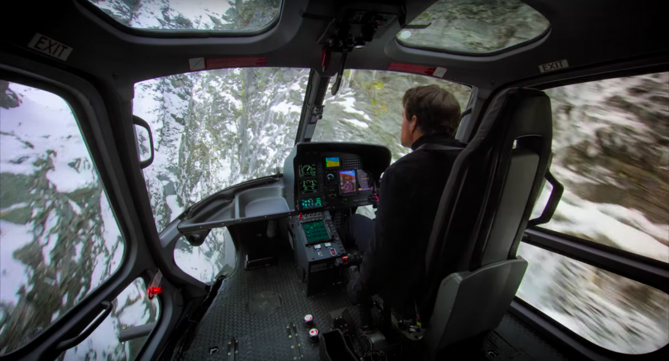 Scéna v helikoptéře.