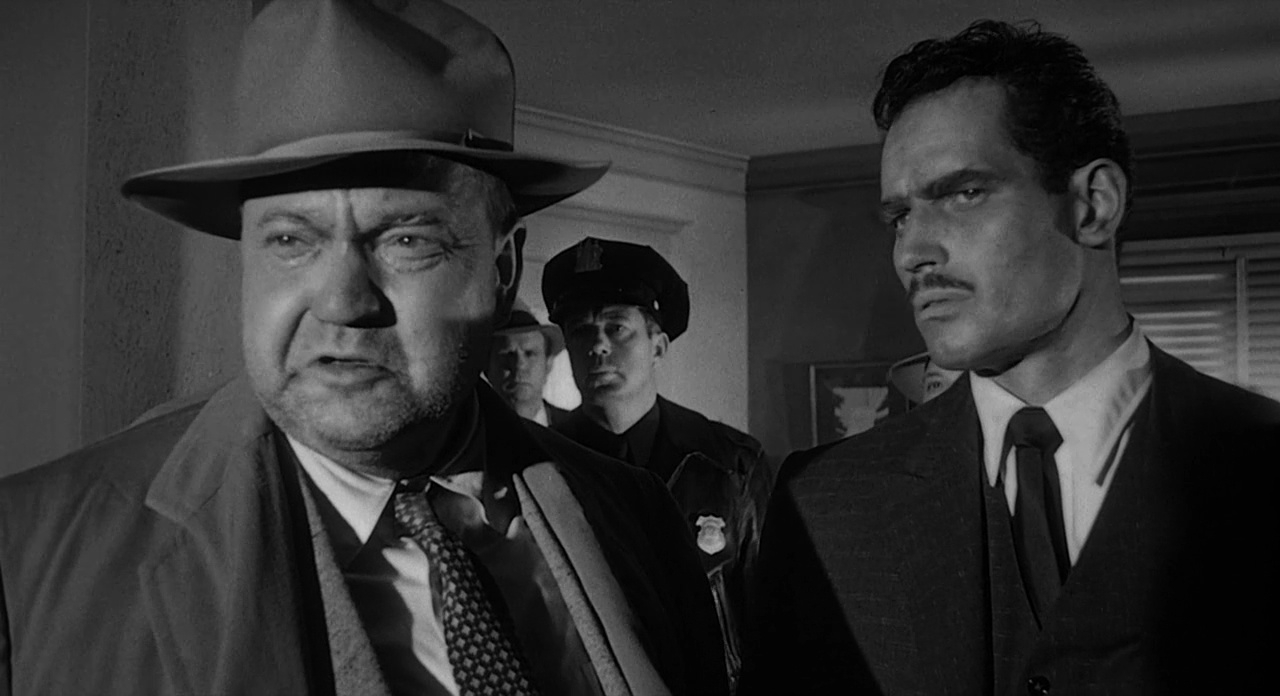 Dotek zla - otylý zkorumpovaný Orson Welles a normálně plavovlasý Charlton Heston v unikátní roli mexického politika.