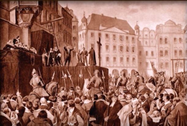 Černým suknem potažené lešení bylo zhruba dvacet kroků dlouhé.
