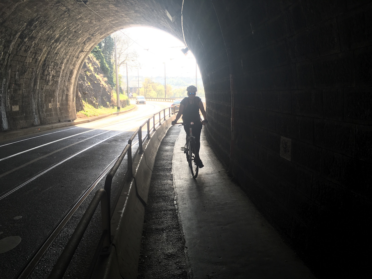 Cykloteroristka projíždějící přes zákaz Vyšehradským tunelem. Sestřelí prvního chodce za zatáčkou.