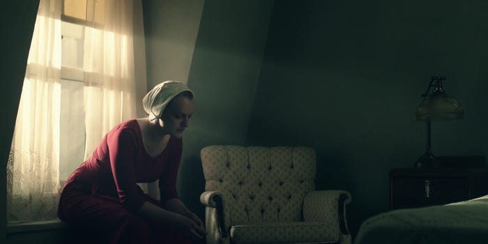 V knize se například nedozvíme pravé jméno halvní hrdinky Offred. V seriálu se ale hned na konvi první epizody divákům sama představí jako June. Tvůrce scénáře ho vytáhl z internetové diskuze, kdy čtenáři předlohy spekulovali, jak se jejich hrdinka jmenuje.Hulu