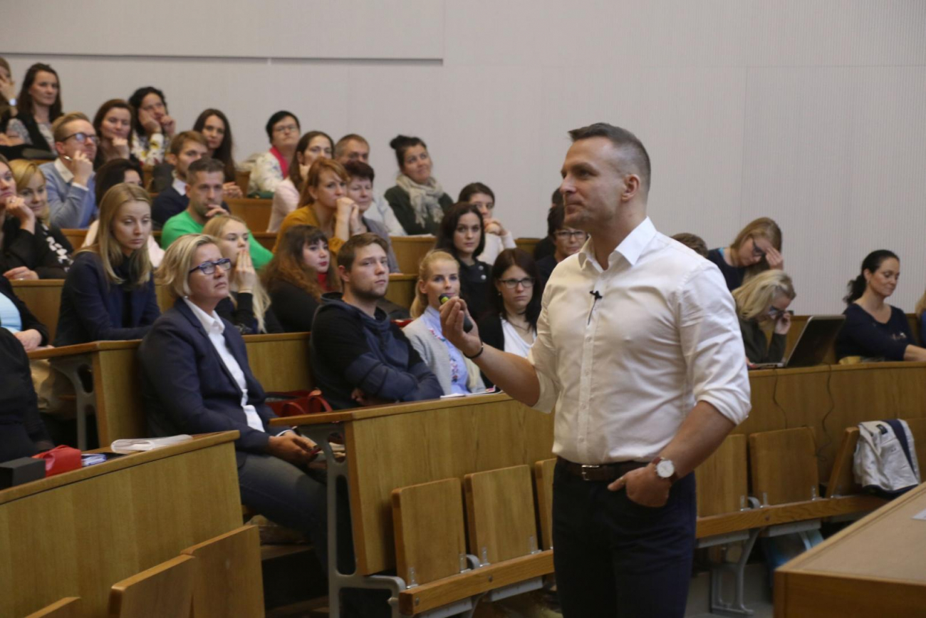 Profesor Ptáček pravidelně přednáší. Jedna z jeho přednášek je věnovaná štěstí. Na nezájem si rozhodně pan profesor stěžovat nemůže. Archiv Radka Ptáčka/Institut psychologie
