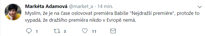 Poslankyně Adamová za TOP 09 celou situaci vtipně glosuje. reprofoto Twitter