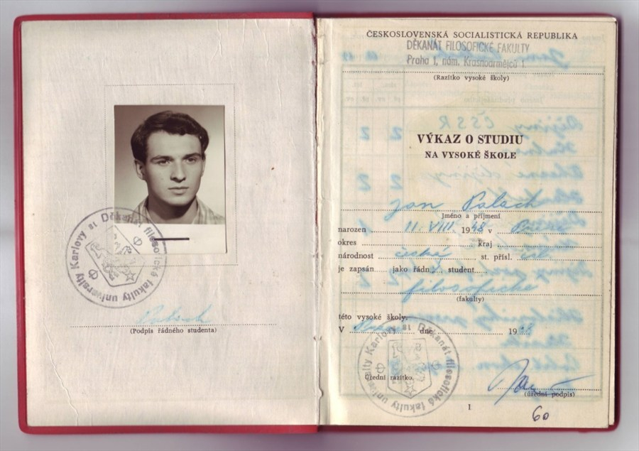 Index Jana Palacha jako studenta Filosofické fakulty. Tam mu komunisté pro špatný původ neumožnili studovat napoprvé, když po maturitě podal přihlášku.