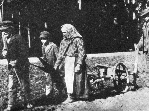 Rusíni při obdělávání půdy. Fotografie pochází z roku 1961.