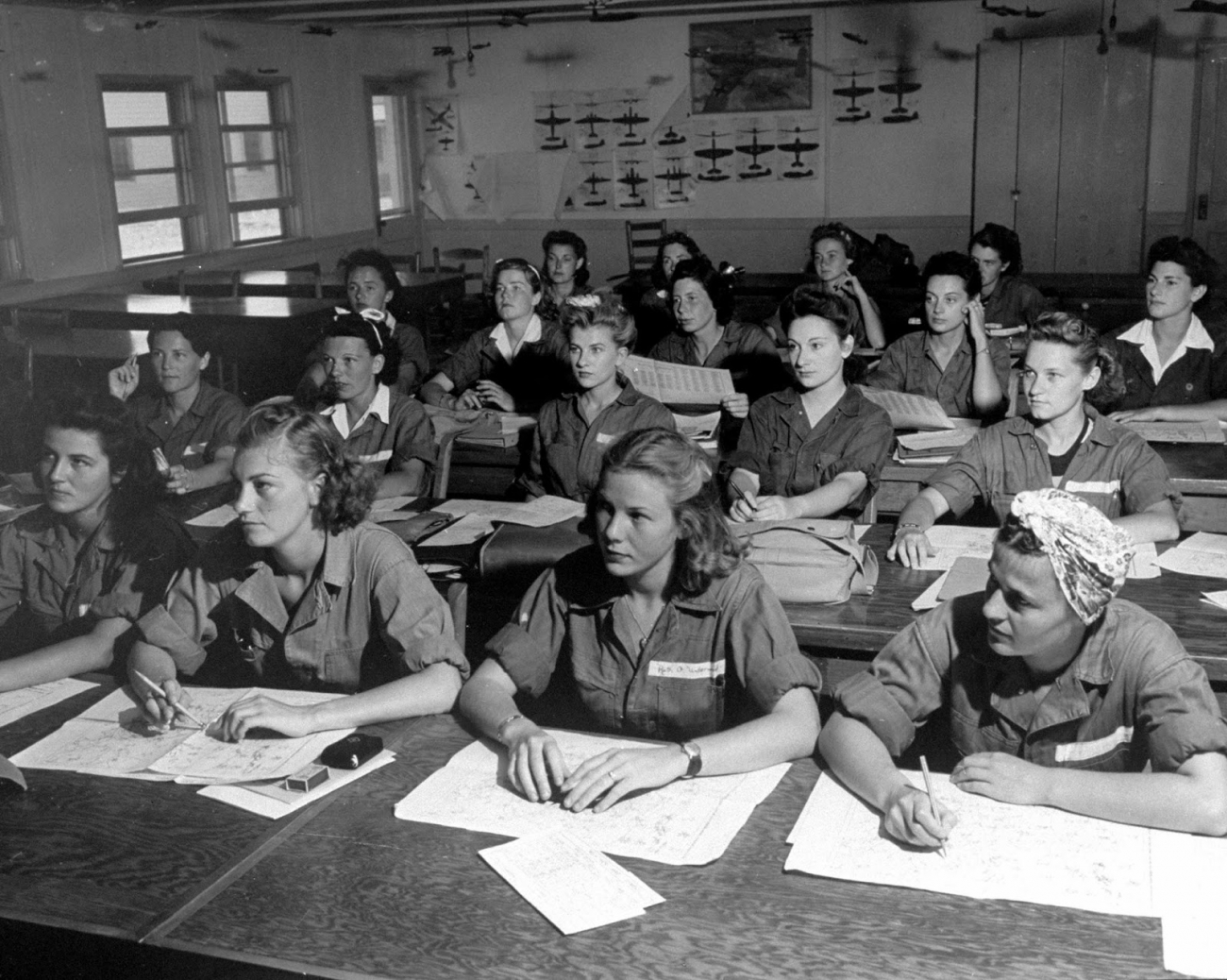 V učebně meteorologie se právě holky učí číst symboly a meteorologické mapy, které budou jako pilotky používat při navádění svých strojů. Pokud jejich výsledky v testech nejsou valné, samostudiem je po večerech dohánějí. Musejí být profíky, palubní zbraně si na ně leští germánské Messerschmitty a Focke-Wulfy nad Evropou nebo japonská letadlová loď Yamato v Tichomoří.