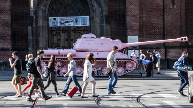 Zřejmě největší skandál vyvolal Černý v roce 1991, kdy natřel na růžovo tank č. 23. Protože šlo o symbol a památník sovětských tankistů, byl výtvarník za tento počin krátce stíhán. Po uvedení památníku do původního stavu natřela tank znovu na růžovo skupina poslanců a tank přišel o status národní technické památky.