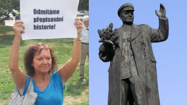 Komunisté "odmítají přepisování historie": Vzteky rudá Marta protestovala před Koněvovou sochou Václav Roman