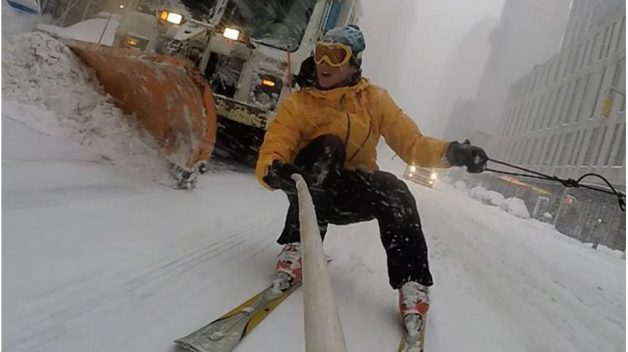 Sněžné peklo v New Yorku: někdo si to užívá, lyžuje a snowboarduje