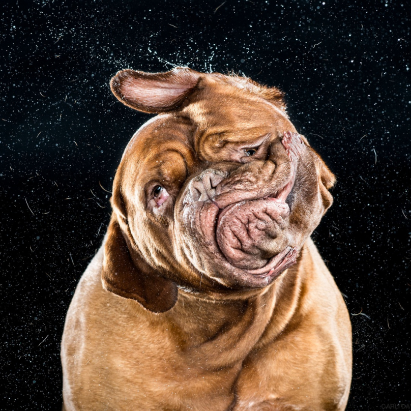 Co udělá pes, když se namočí nebo zmokne? Otřepe se, oklepe se, zkrátka sebou zavrtí v horizontální rovině, aby zbavil svou srst vody.