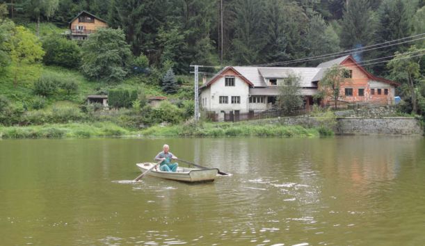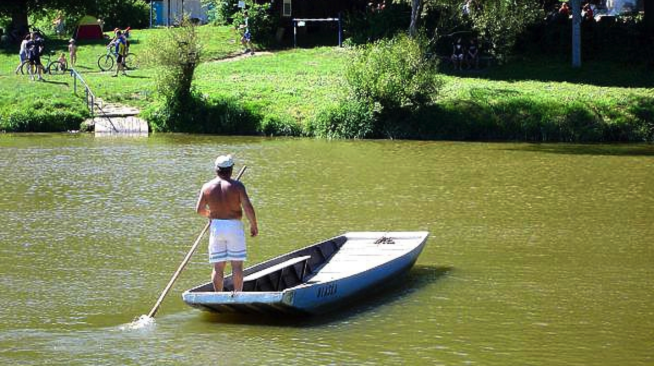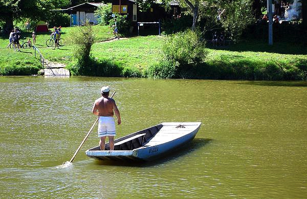 přívozem se dostanete k Píšťanskému jezeru. Provozují ho Stanislav Svoboda a Vlastimil Valtr. Na druhé straně řeky dřív visel zvon, kterým jste si je mohli přivolat. „Jednou koukám, že mi ho někdo krade," vzpomíná pan Svoboda. „Zařvu na ně: Nechte ho tam, vy parchanti! A oni: Vyliž nám prdel! Hodili zvon do auta a ujeli."